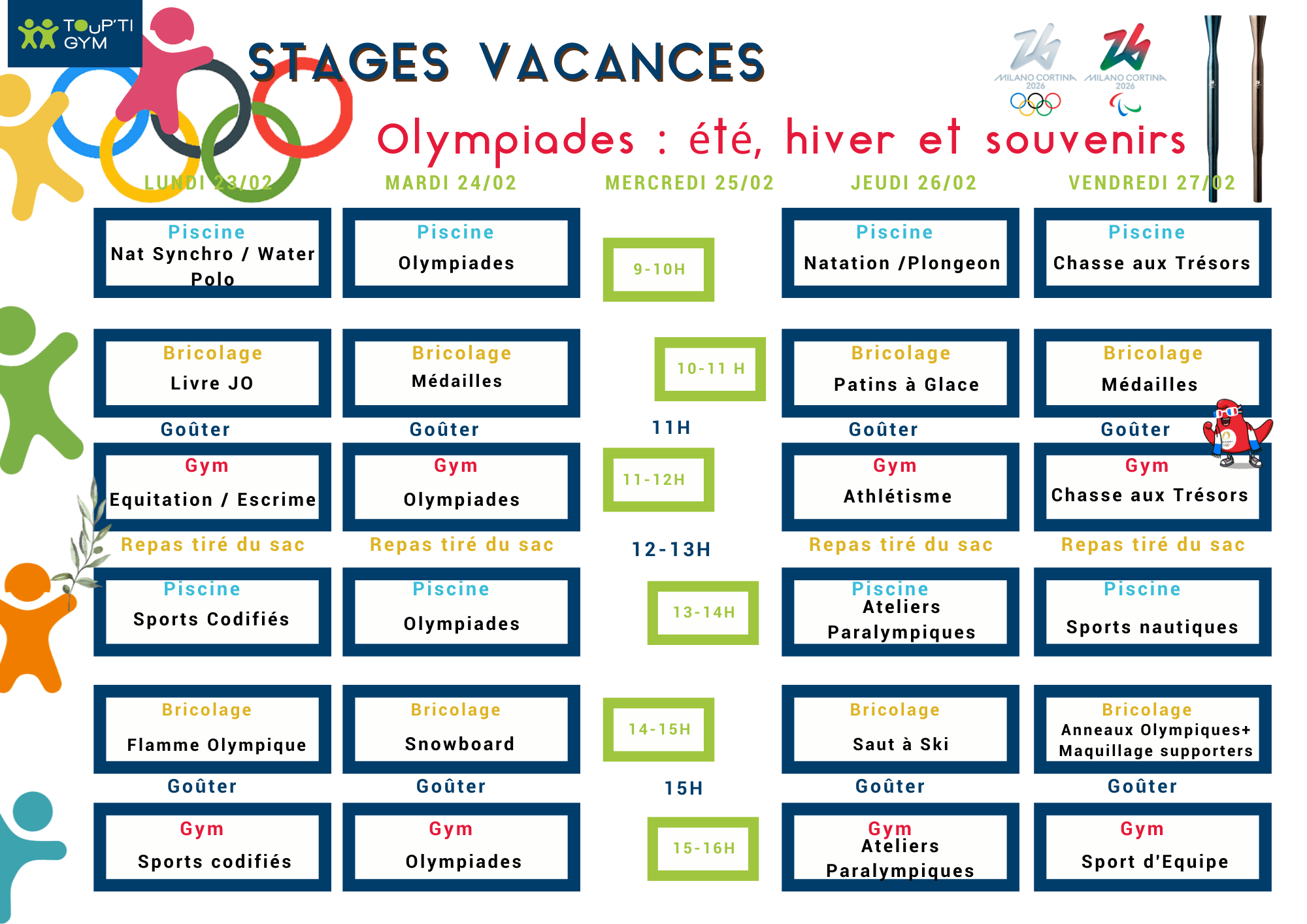C’est exactement ce que propose Toup’ti Gym : une semaine de stage vacances où chaque journée devient une aventure, mêlant plaisir, apprentissage et nouvelles expériences pour les enfants de 3 à 12 ans.